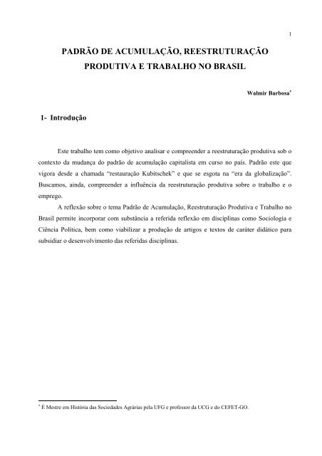 Padrao De Acumulacao Reestruturacao Produtiva E Trabalho Inicio